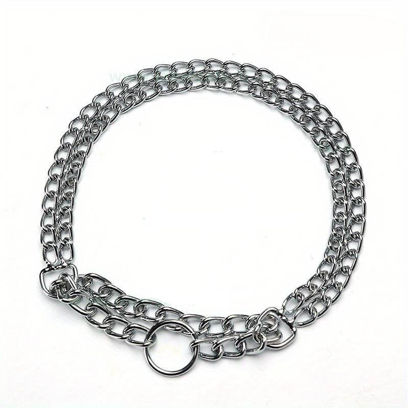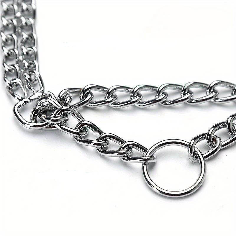 Zgarda ștrangulantă este folosit în dresajul canin sau corectarea problemelor de comportamente. este utilizat în special pentru câinii de talie medie și mare și îi împediecă pe aceștia să tragă în lesă și îi forțează să meargă la picior, compensând sau suplimentând un dresaj corect în acest scop. Poate fi dimensionată în funcție de dimensiunea gâtului câinelui. Confecționată din oțel inoxidabil. Prevăzută cu lanț culisant. 2,5 mm x 60 cm; Când alegeți o zgardă ștrangulantă măsurați circumferința gâtului (imediat în spatele urechilor) cățelului iar la aceasta dimensiunie mai adaugați 5 cm, determinând astfel lungimea zgărzii care trebuie cumpărată.