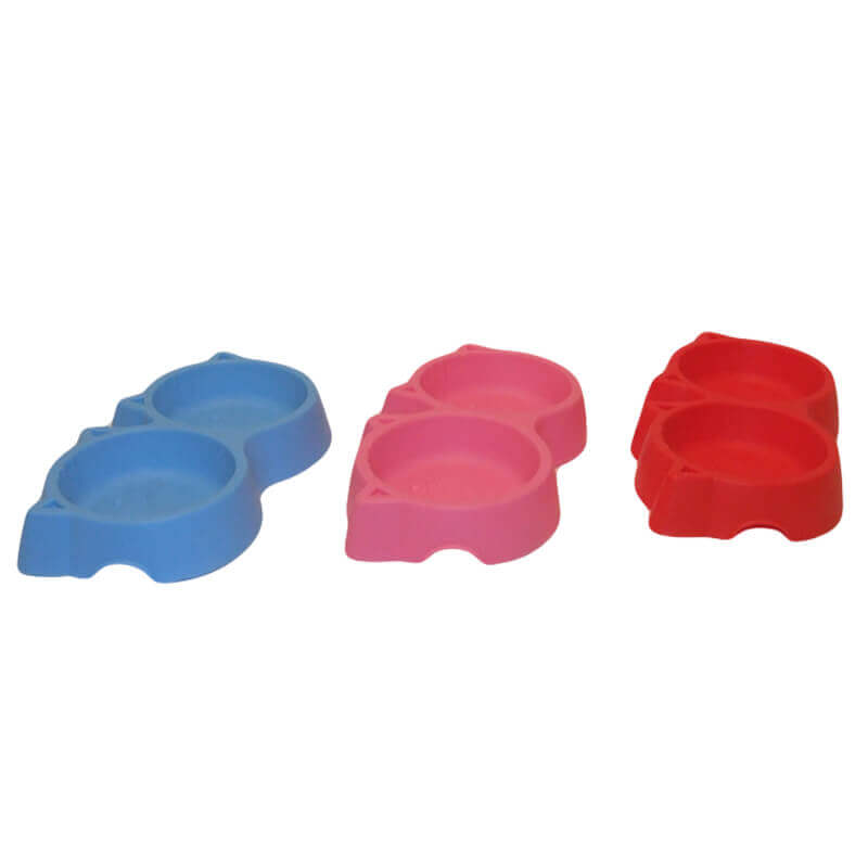 Castron dublu plastic cu forma de cap pisica 2x0.3 l