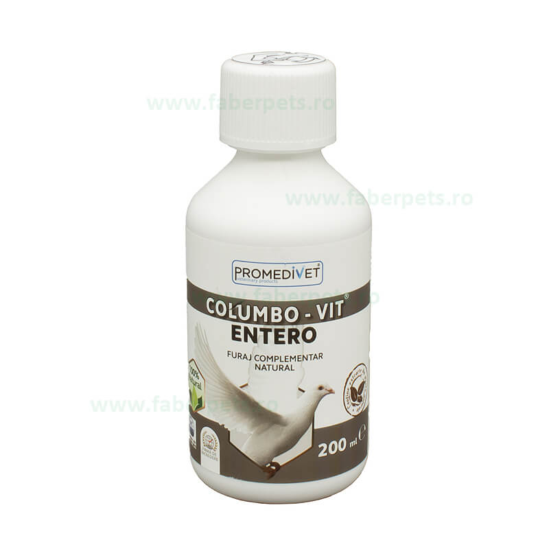 Proprietăți: Conţine extracte de plante medicinale care au proprietăţi antiseptice, antiinflamatoare, hepatoprotectoare, coleretice, antidiareice, antihemoragice, antiemetice, analgezic local, antispastice şi astringente, în enterocolite, diaree cronice şi acute, dizenterii, dureri abdominale cu crampe, balonări intestinale, în lipsa poftei de mâncare, în anemie, detoxificând organismul, eliminând bacteriile de putrefacţie din intestin, normalizând flora intestinală, în infecţii bacteriene, fungicide şi virale ale tubului digestiv. Se recomandă folosirea la porumbei. Mod de utilizare:Se administrează la porumbei pe cale orală, 2- 3 ml/1 L apă de băut, timp de 7- 10 zile. În cazurile grave doza se dublează. Se poate administra în continuu în caz de necesitate. Ingrediente:Urtica dioica (urzică frunză)•Agrimonia eupatoria (turita mare) • Calendula officinalis (gălbenele) • Lithrum salicaria (rachitan) • Hypericum perforatum (sunătoare) • Mentha (mentă) • Populus nigra(muguri de plop) • Plantago (patlagina)• Origanum vulgare (șovârf) • Potentilla anserina (coada racului) • Salvia officinalis (salvie) • Achillea millefolium (coada șoricelului)• Vaccinium myrtillus (afine frunze)• Angelica archangelica (angelica)• Foeniculum vulgare (fenicul)• Anethum graveolens (marar fructe) •Coriandrum sativum (coriandru)• Cuminum (chimion)Precauții:A nu se lăsa la îndemâna copiilor. A nu se refolosi flaconul după golire. Prezentare:200 ml