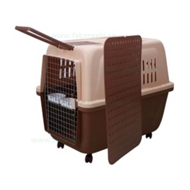 Cușca îi oferă câinelui extra siguranță în timpul călătoriilor scurte sau lungi, datorită încuietorului. De preferință adăpătorul se atașează pe grilajul ușii frontale. Pentru un plus de siguranță, acestea sunt dotate cu șuruburi metalice, care mențin cușca mult mai stabilă chiar și în timpul deplasărilor lungi sau pentru transport aerian. Cușca este dotată cu două mânere și cu patru roți, astfel excelent pentru tractarea transportului. Dimensiuni: Lungime: 81 × lățime: 57 × înălțime: 59 cm Greutate cușcă: 4 kg După folosire se curăță cu jet de apă. Nu utilizați detergenți solizi! Riscați să zgâriați produsul.