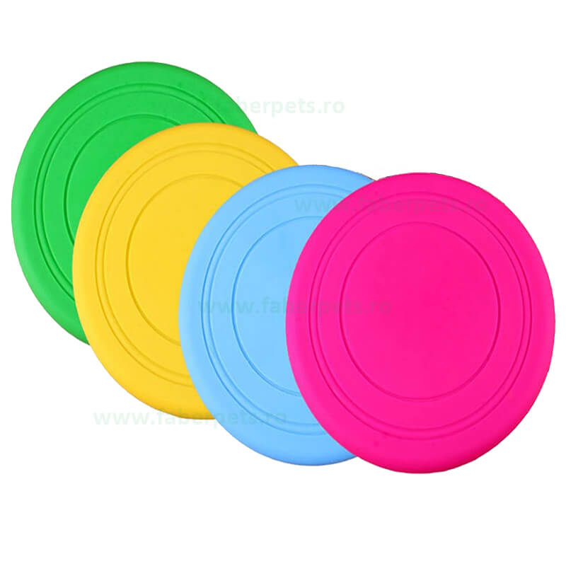 Jucărie disc cauciuc Frisbee Jucăria este confecționată din cauciuc, material ce foarte rezistent la intemperii şi extrem de durabil. Distrați- vă alături de cățelul dumneavoastră și încercați să aruncați cât mai departe aceasta jucarie din cauciuc. El va fi gata să alerge, să o prindă și să o aducă înapoi. Util pentru antrenamentul câinilor. Îmbunătățește reflexele animaluțelor. Potrivită pentru toate vârstele, de la cățeluși la seniori. Diametru: 17 cm. IMPORTANT: Acest produs este disponibil în diverse culori, așadar nu putem garanta livrarea unei anumite culori. Atenție! Ca în cazul oricărui alt produs, este important să vă supravegheați animalul de companie în timpul jocului. Verificați produsul în mod regulat și înlocuiți- l în cazul în care este deteriorat sau îi lipsesc piese pentru a evita o eventuală rănire a animalului de companie. este recomandat înlocuirea jucăriei în momentul deteriorării!