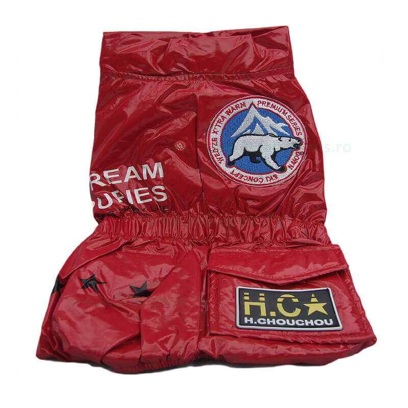 Overall lucios rosu pentru caini S-10, M-12, XL-14, XXL-18