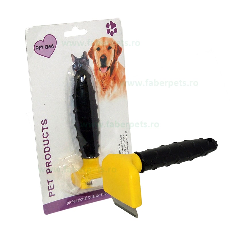 Această perie a fost concepută pentru a vă ajuta, pentru o îngrijire simplă și ușoară a animaluțelor dvs. Descâlcire profundă și eficientă datorită rândurile de dinți. Are dinți metalici fixați în pat plastic. Ideală pentru câini cu părul mediu sau lung. este prevăzută cu un mâner ergonomic cauciucat, confortabil pentru aderență maximă. Lățimea țesalei – 4. 5 cm. Lungimea țesalei – 14 cm. Ghid de utilizare perie:Asigurați- vă că blana câinelui dvs. este complet uscată. Periați încet animalul dvs. în sensul creșterii părului. Faceți mișcări lungi și suple și evitați să treceți de mai multe ori în același loc. La periere acordați o deosebită atenție zonelor mai sensibile ale animalului Dvs. (burta, labe, părți genitale, anus). O periere prea apăsată sau repetată poate irita pielea. Dacă remarcați o iritare sau înroșire a pielii încetați imediat să folosiți peria. Evitați să vă sprijiniți pe animal atunci când îl pieptănați.