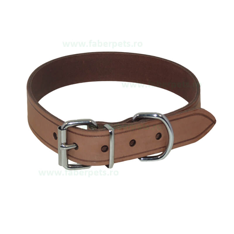 Zgardă confecționată din piele naturală de calitate. Are lățimea de 2, 5 cm, 0. 4 cm grosime și lungimea maximă desfășurată de 55 cm. este recomandată pentru câini de talie medie și mare. Reglare simplă și rapidă, beneficiind de un sistem de închidere eficient ce include o cataramă rafinată din metal cromat. Rezistentă, puternică. Comfortabilă. Elegantă.